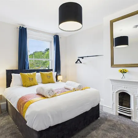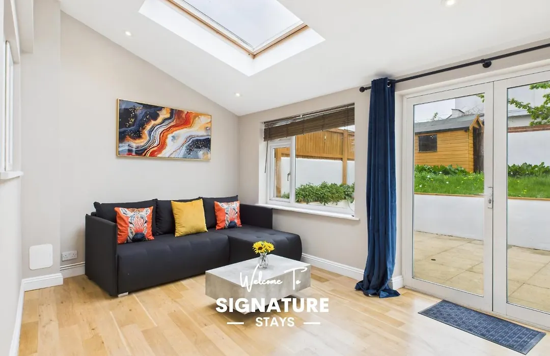 Queens Road By Signature Stays - Modern - Central设有天井 和野餐区,到格洛斯特郡大学开车只需15分钟。 别墅除了2间浴室外,还拥有2间卧室。